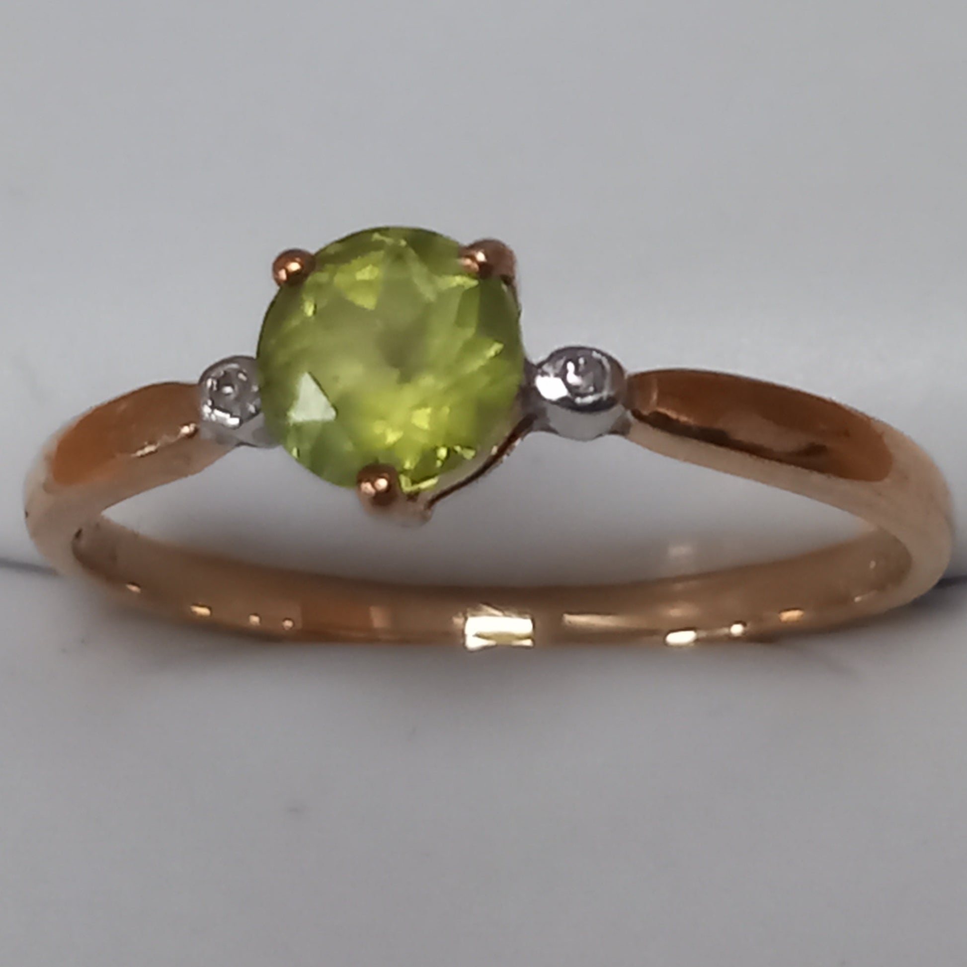 9ct Gold Green Stone & Diamond Ring Size R