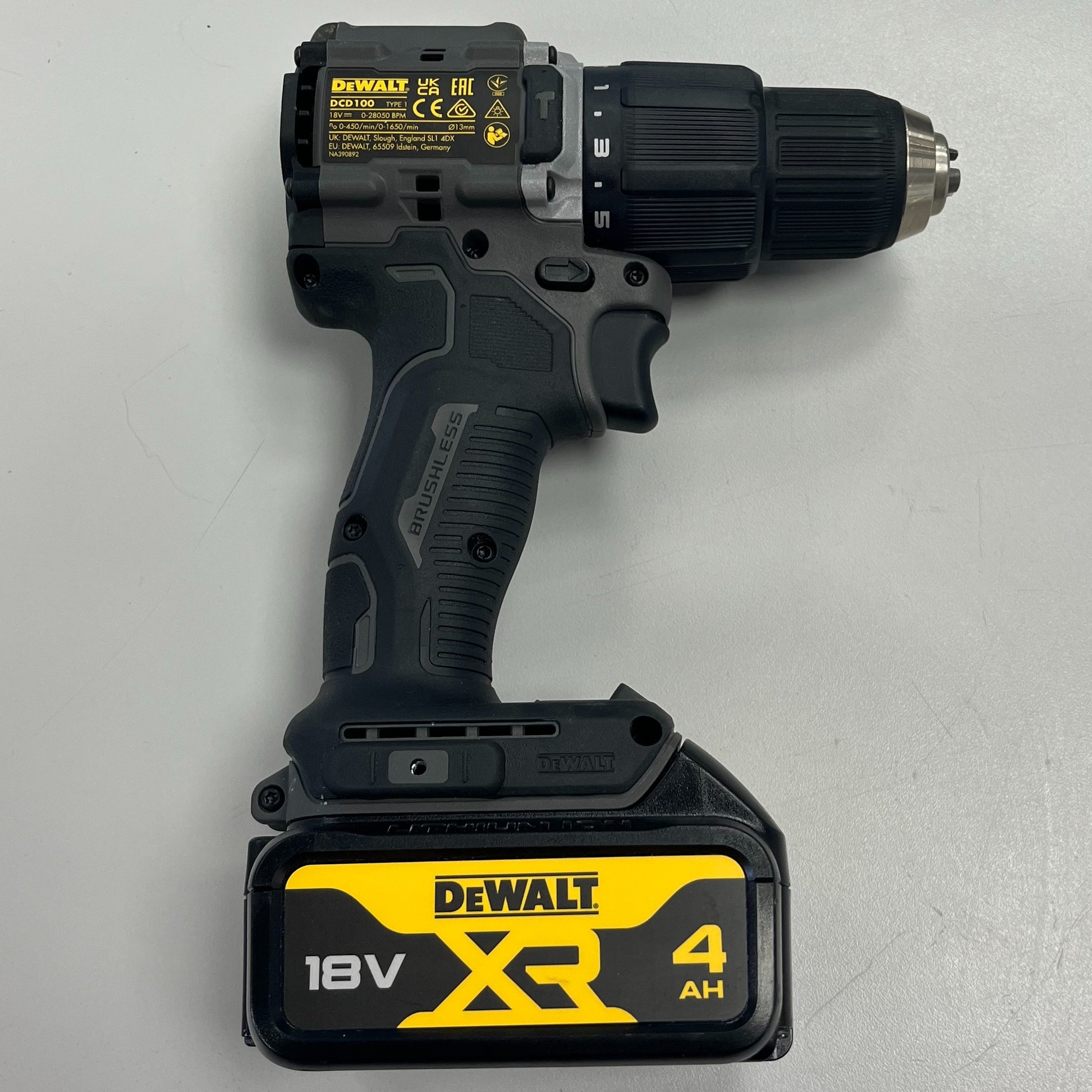 The Limited Edition DCD100 has been engineered to celebrate 100 years of DEWALT and our relentless pursuit of the cordless jobsite. This brushless drill is our most compact 18V XR Hammer Drill Driver that delivers up to 68Nm of torque in a compact 164mm body, designed to give you the performance you need on the toughest jobsites.