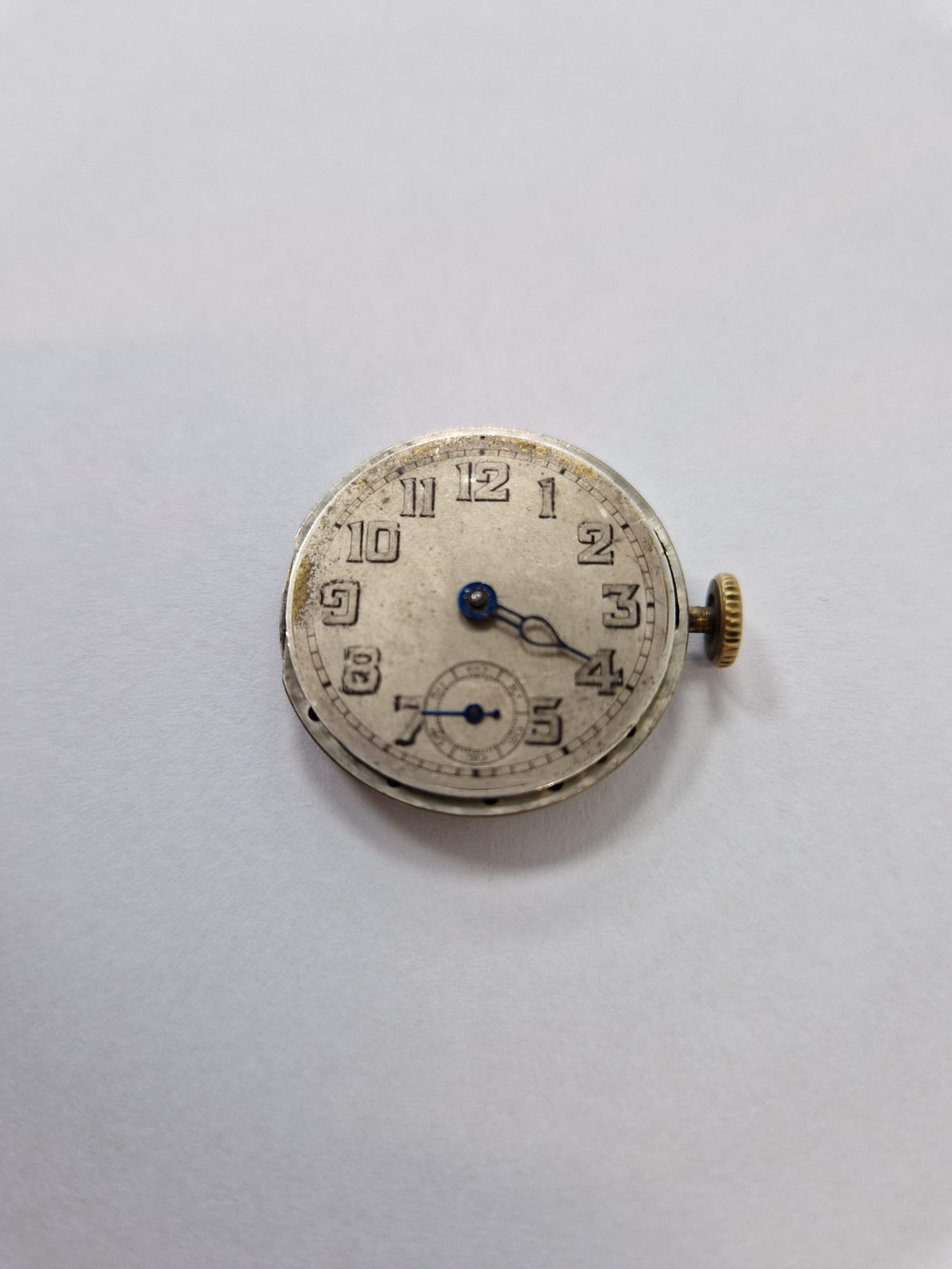 The movement is in good condition considering its age but missing the minute hand and sold as-is.